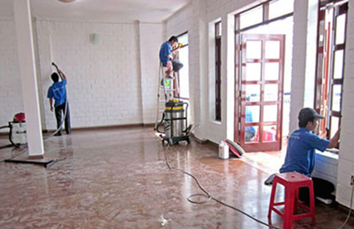 • Vệ sinh sạch sẽ bề mặt tường bằng nước, chổi sắt, máy hút bụi công nghiệp,… Để đảm bảo độ bám dính tối đa cho vật liệu chống thấm.
